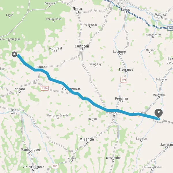 Prendre D626 (Rue de Gascogne) et continuer sur 15 kilomètres