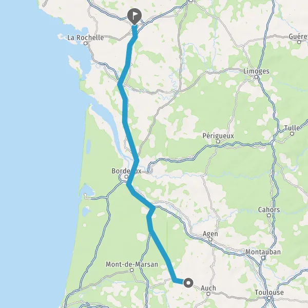 Prendre à droite et rejoindre A65 E7. Continuer sur 30 kilomètres