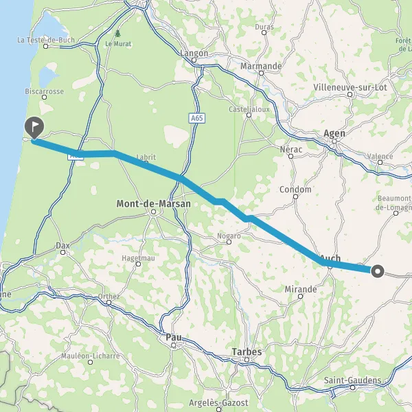 Au rond-point, prendre la 2ème sortie sur D626 (Avenue d'Albret) et continuer sur 18 kilomètres