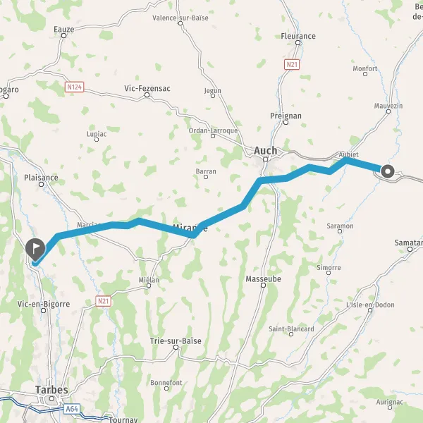 Tourner à droite sur N21 (Route de Tarbes) et continuer sur 2 kilomètres