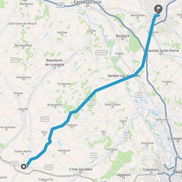 Tourner à droite sur D21 (Route de Cadours) et continuer sur 4,9 kilomètres