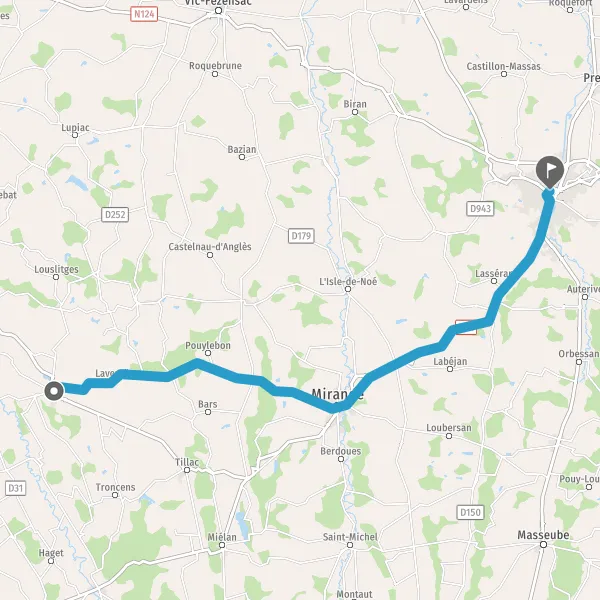 Tourner à droite sur D159 (Route de Mirande) et continuer sur 2,1 kilomètres