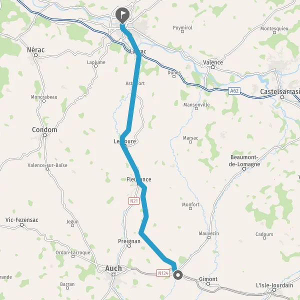 Au rond-point, prendre la 2ème sortie sur N21 (Avenue du Corps Franc Pommiès) et continuer sur 7,5 kilomètres
