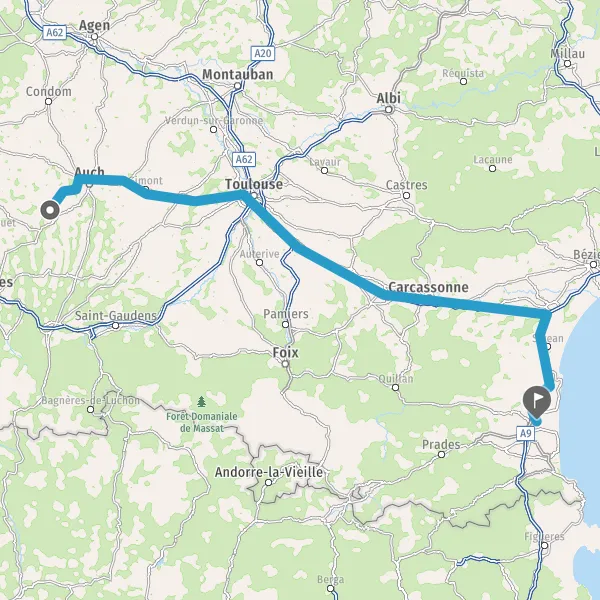 Prendre à droite et rejoindre A9 E15. Continuer sur 47 kilomètres