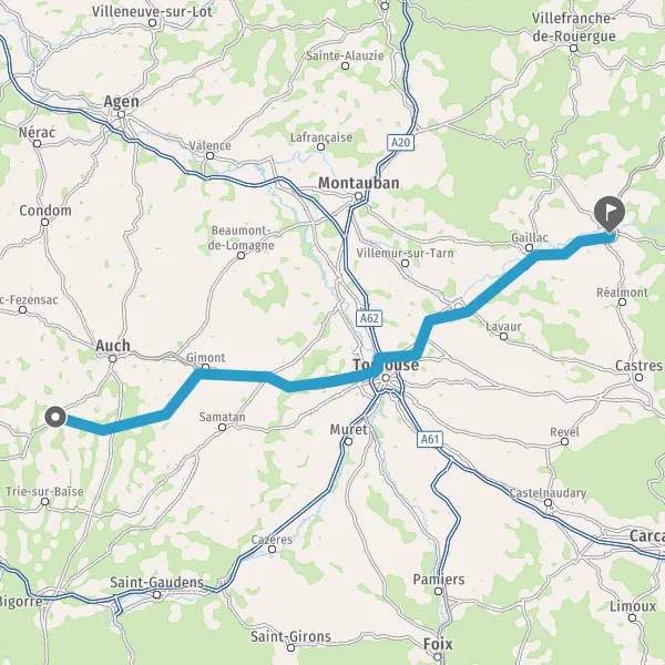 Tourner légèrement à droite sur N21 (Route d'Auch) et continuer sur 18 kilomètres