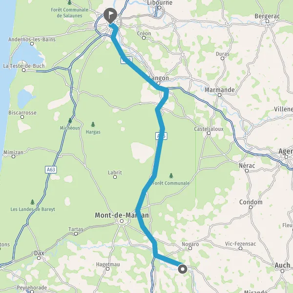 Avec le mode voiture, vous pouvez configurer vos options (type de véhicule, autoroute ou non, péage ou non, distance la plus courte), tout en ayant accès aux infos de circulation grâce à notre service d'info-trafic en temps réel. Ainsi faites des économies sur le coût ou la durée de votre voyage, en trouvant le trajet Riscle Bordeaux adapté à vos besoins.