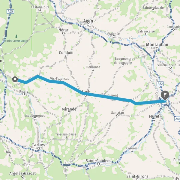 Tourner légèrement à droite sur N124 (Route d'Auch) et continuer sur 4,5 kilomètres