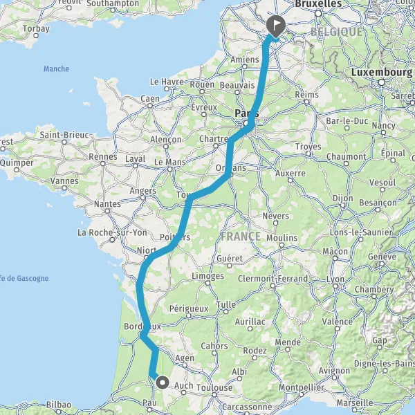 Continuer et rejoindre A65 E7. Continuer sur 59 kilomètres