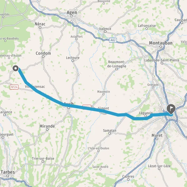 Au rond-point, prendre la 2ème sortie sur N124 (Route d'Auch) et continuer sur 7,2 kilomètres