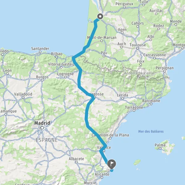 Prendre à droite et rejoindre A63. Continuer sur 205 kilomètres
