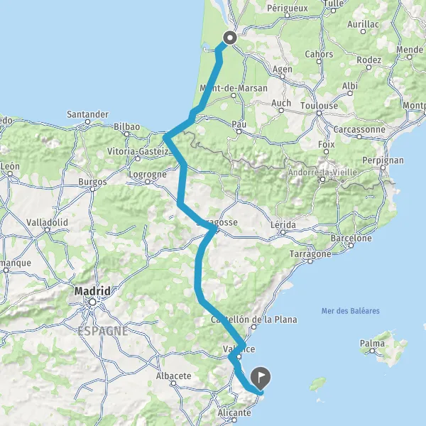Prendre à droite et rejoindre A63. Continuer sur 205 kilomètres