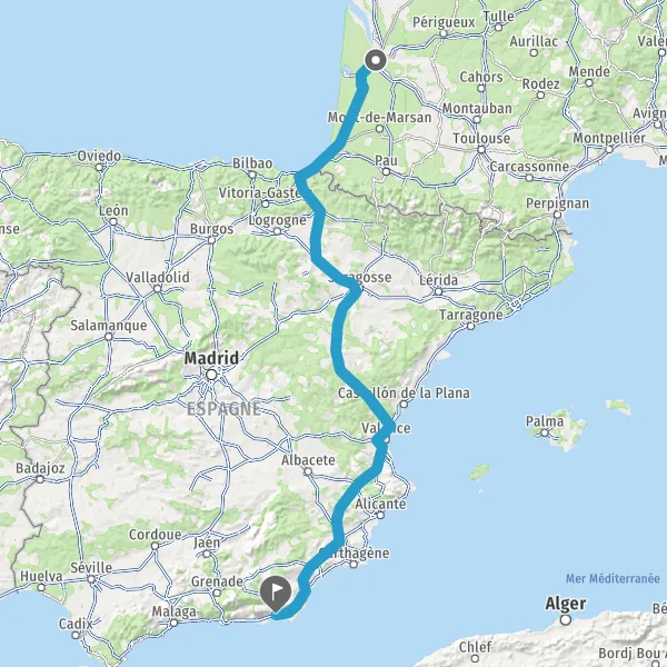 Prendre à droite et rejoindre A63. Continuer sur 205 kilomètres