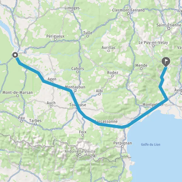 Prendre à gauche et rejoindre A62 E72. Continuer sur 224 kilomètres