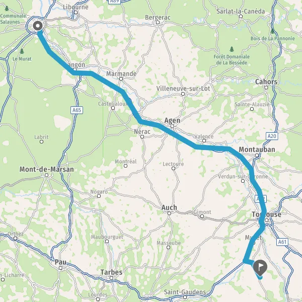 Prendre à gauche et rejoindre A62 E72. Continuer sur 224 kilomètres