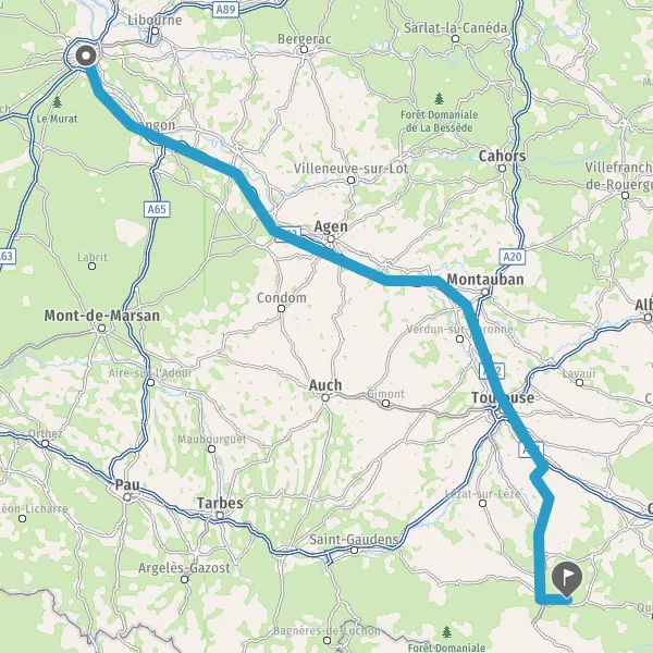 Prendre à gauche et rejoindre A62 E72. Continuer sur 224 kilomètres