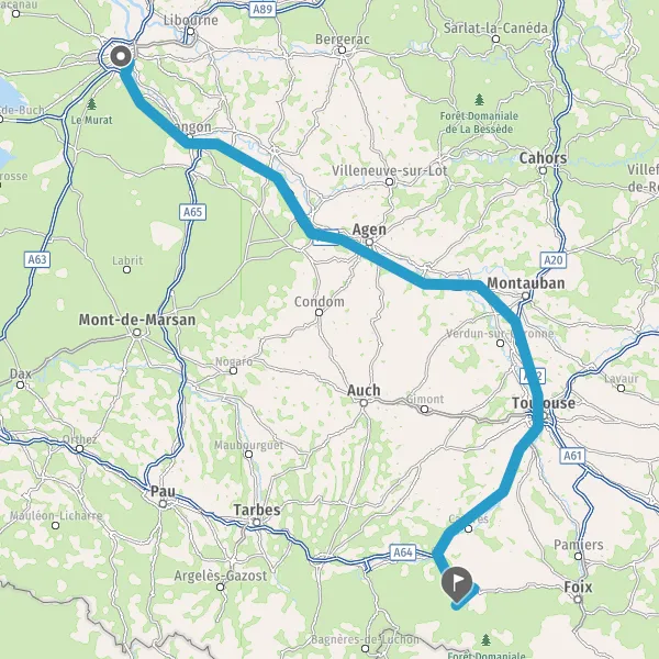 Prendre à gauche et rejoindre A62 E72. Continuer sur 224 kilomètres