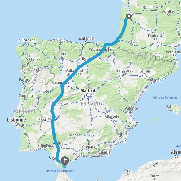 Prendre à droite et rejoindre A63. Continuer sur 205 kilomètres