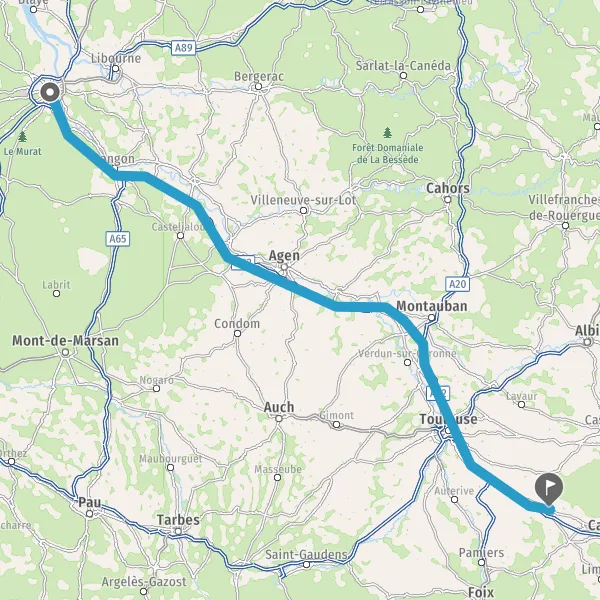 Prendre à gauche et rejoindre A62 E72. Continuer sur 224 kilomètres