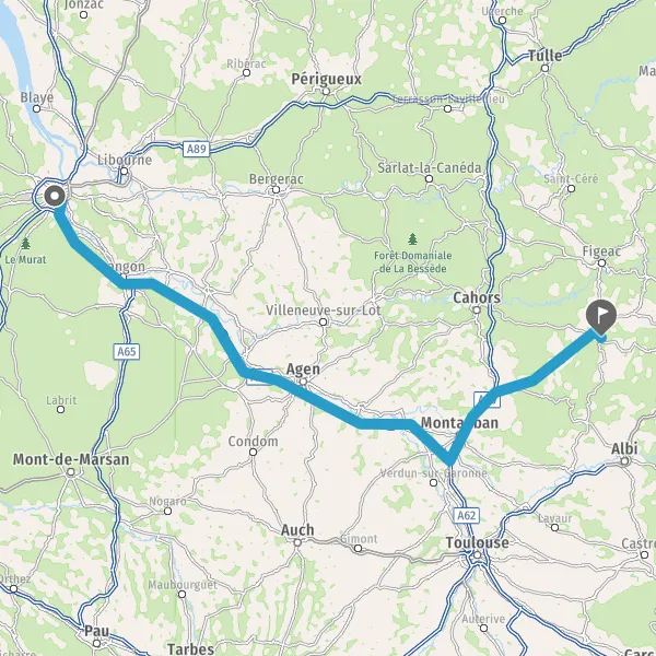 Prendre à gauche et rejoindre A62 E72. Continuer sur 191 kilomètres