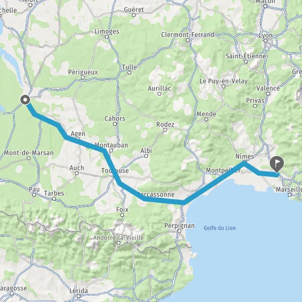 Prendre à gauche et rejoindre A62 E72. Continuer sur 224 kilomètres