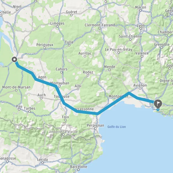 Prendre à gauche et rejoindre A62 E72. Continuer sur 224 kilomètres