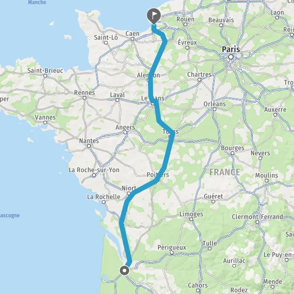 Continuer E5 (L'Aquitaine) sur 328 kilomètres
