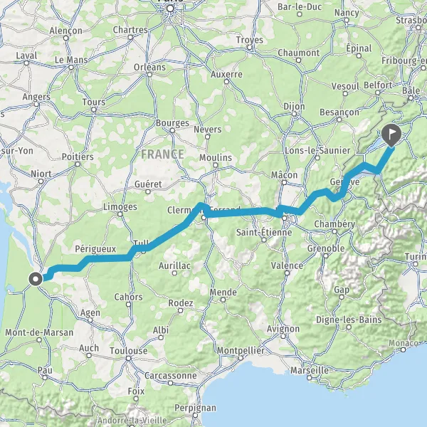 Prendre à droite et rejoindre A40 E62 E21. Continuer sur 77 kilomètres