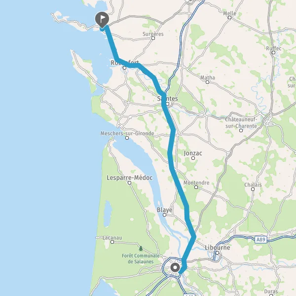 Continuer et rejoindre A837 E602. Continuer sur 34 kilomètres