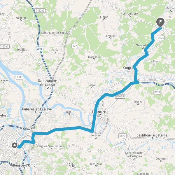 Prendre à droite et rejoindre Boulevard de l'Entre-Deux-Mers. Continuer sur 700 mètres
