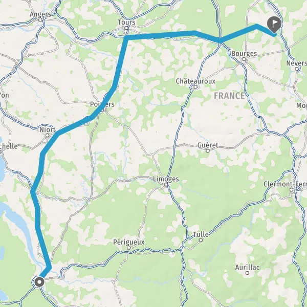 Continuer E5 (L'Aquitaine) sur 308 kilomètres