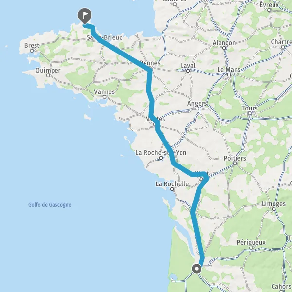 Prendre à droite et rejoindre A83. Continuer sur 150 kilomètres