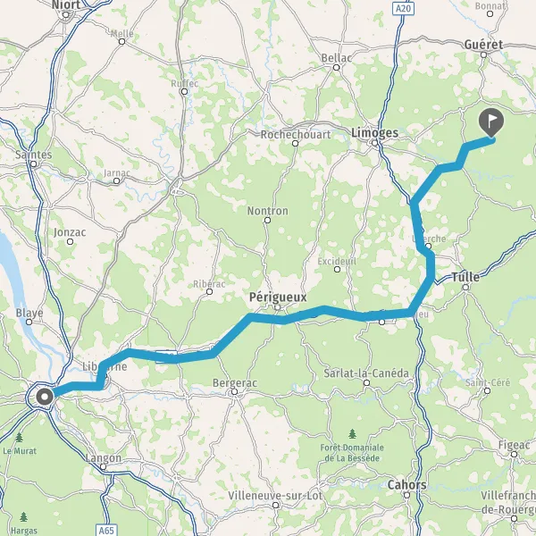 Prendre à gauche et rejoindre A20. Continuer sur 52 kilomètres