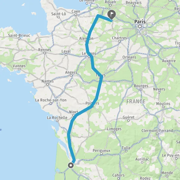 Continuer E5 (L'Aquitaine) sur 328 kilomètres