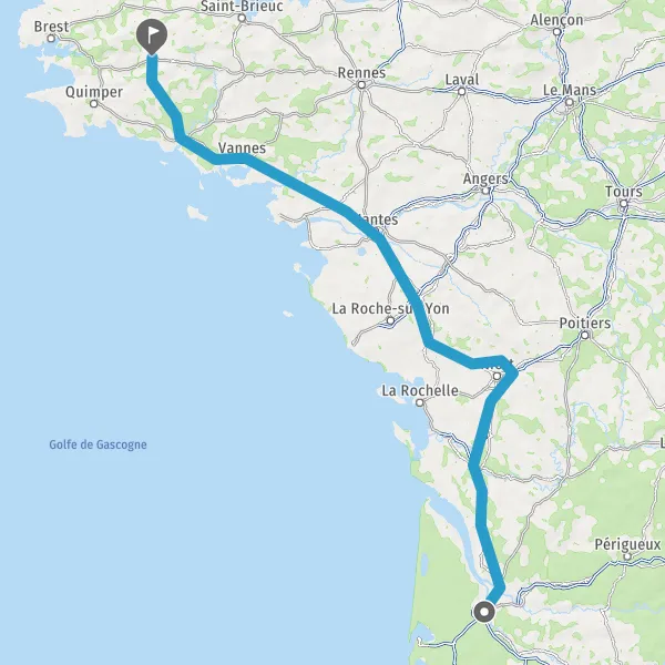 Prendre à droite et rejoindre A83. Continuer sur 150 kilomètres