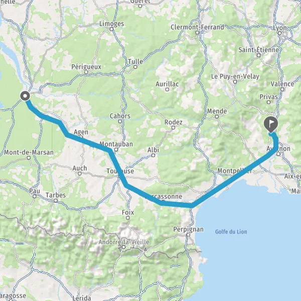 Prendre à gauche et rejoindre A62 E72. Continuer sur 224 kilomètres