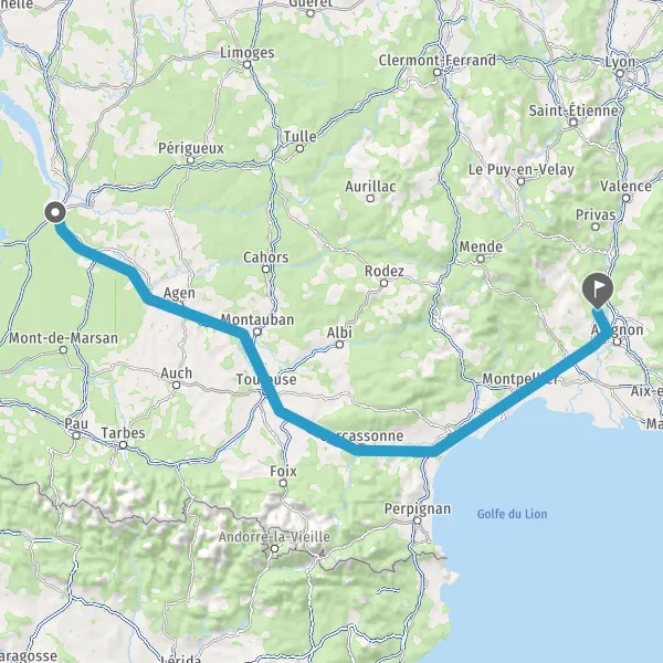 Prendre à gauche et rejoindre A62 E72. Continuer sur 224 kilomètres