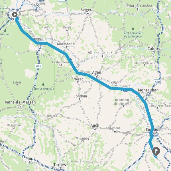 Prendre à gauche et rejoindre A62 E72. Continuer sur 224 kilomètres