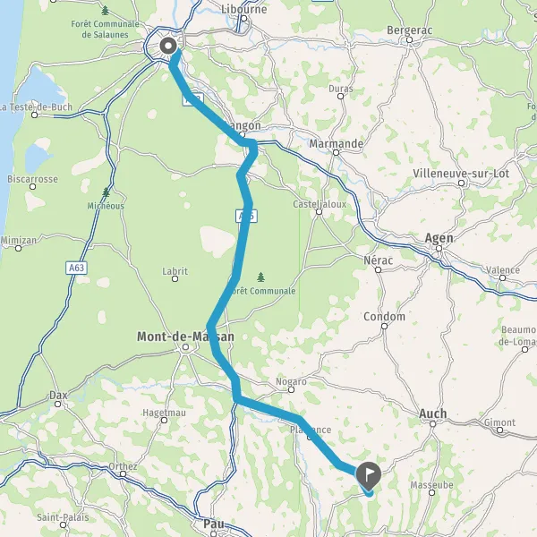 Prendre à droite et rejoindre A65. Continuer sur 99 kilomètres