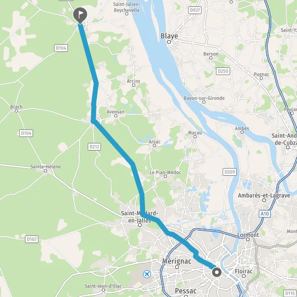 Au rond-point, prendre la 2ème sortie sur Avenue du Taillan-Médoc et continuer sur 2 kilomètre
