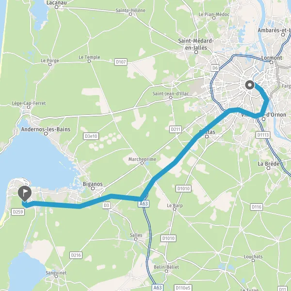 | Distance en voiture | 57 km à 68 km |