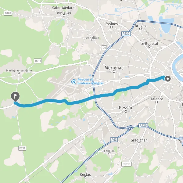 Au rond-point, prendre la 1ère sortie sur D211 (Avenue de Martignas) et continuer sur 60 mètres