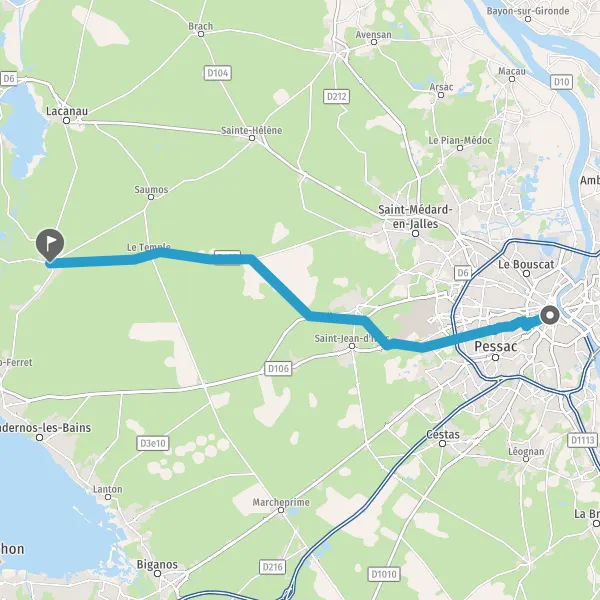 Au rond-point, prendre la 2ème sortie sur D107 (Route du Porge) et continuer sur 7,5 kilomètres