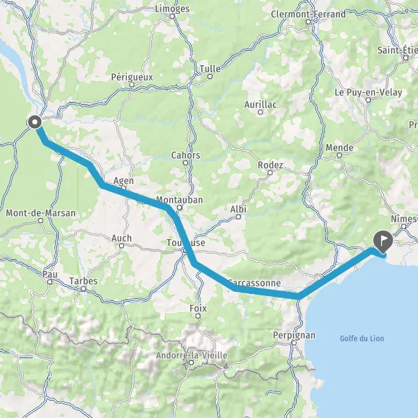 Prendre à gauche et rejoindre A62 E72. Continuer sur 224 kilomètres