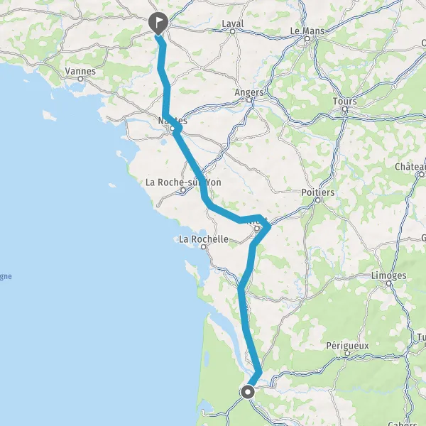 Prendre à droite et rejoindre A83. Continuer sur 150 kilomètres