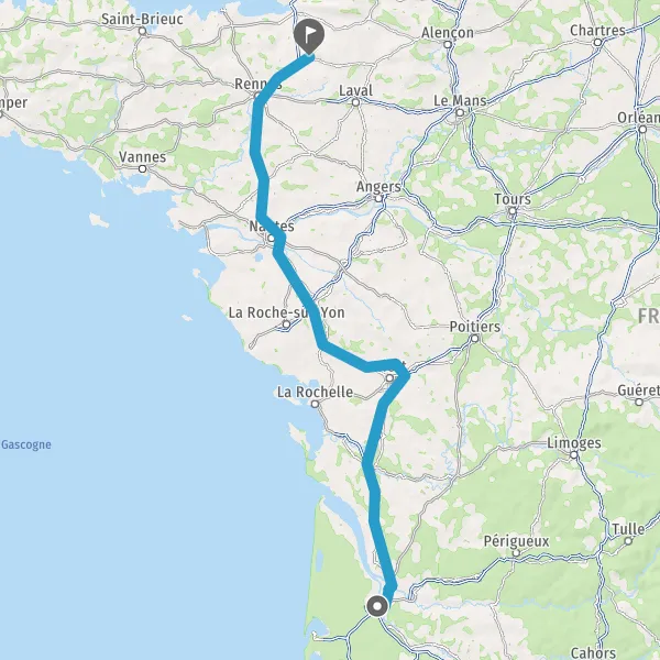 Prendre à droite et rejoindre A83. Continuer sur 150 kilomètres