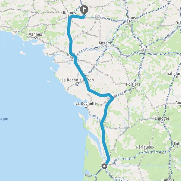 Prendre à droite et rejoindre A83. Continuer sur 150 kilomètres