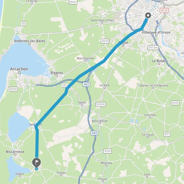 Prendre à droite et rejoindre A63 E70 E5. Continuer sur 19 kilomètres