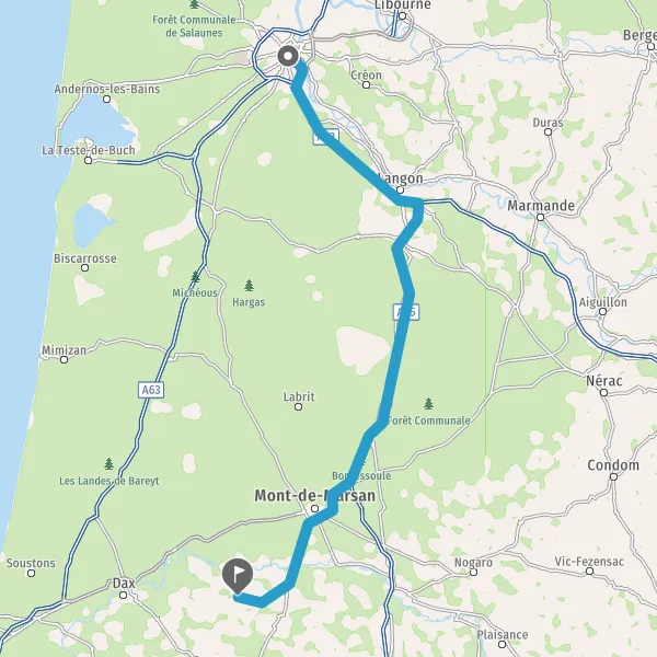 Sortir et rejoindre D933s (Avenue de Saint-Sever). Continuer sur 550 mètres