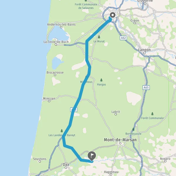 Prendre à droite et rejoindre A63. Continuer sur 104 kilomètres