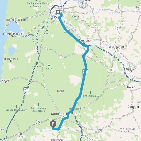 Tourner légèrement à droite sur Route de Mont-de-Marsan et continuer sur 220 mètres